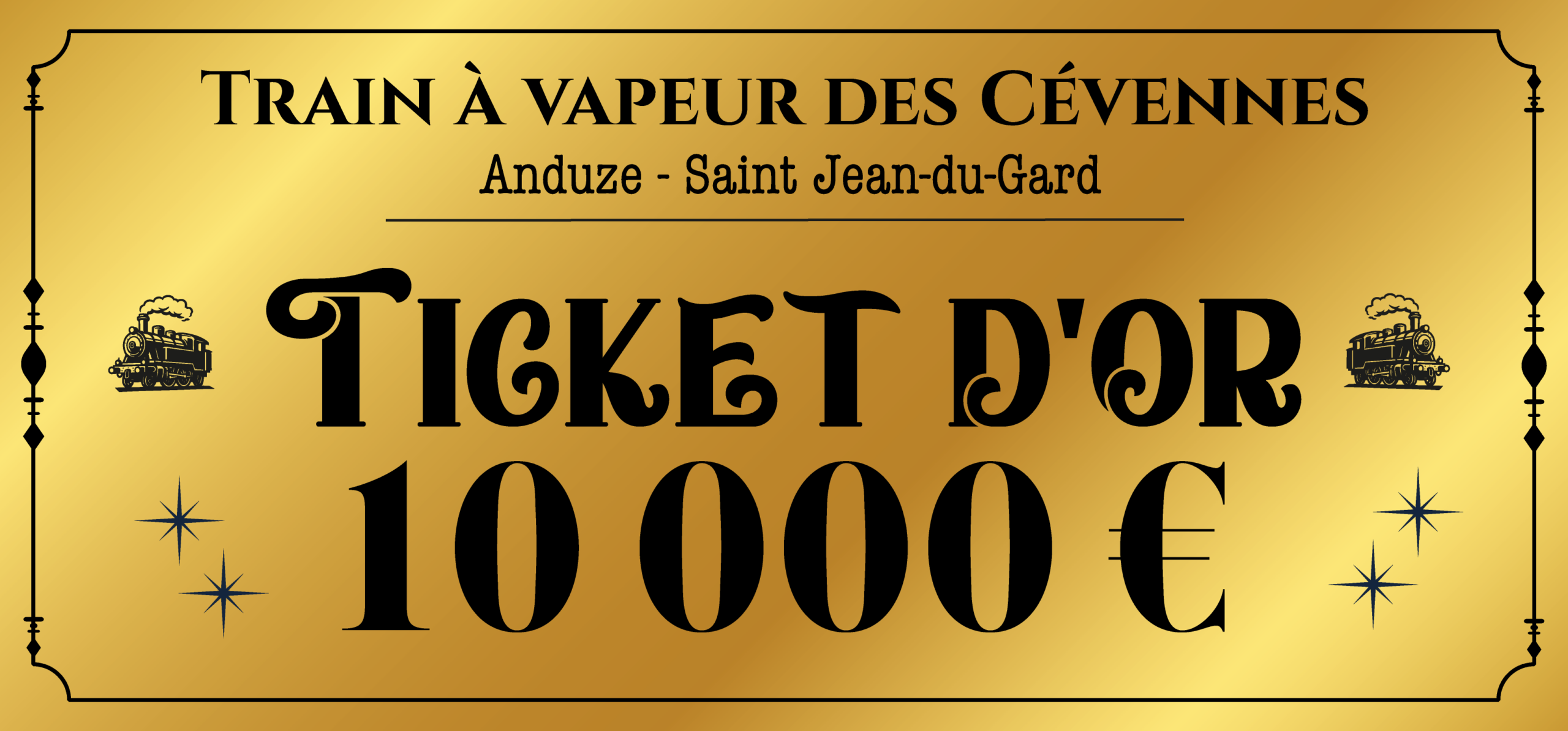Pour fêter nos 40 ans, tentez votre chance avec le Ticket d’Or : une surprise peut se cacher dans votre billet (uniquement en gare) et vous permettre de gagner 10 000 €, ainsi que de nombreux cadeaux.