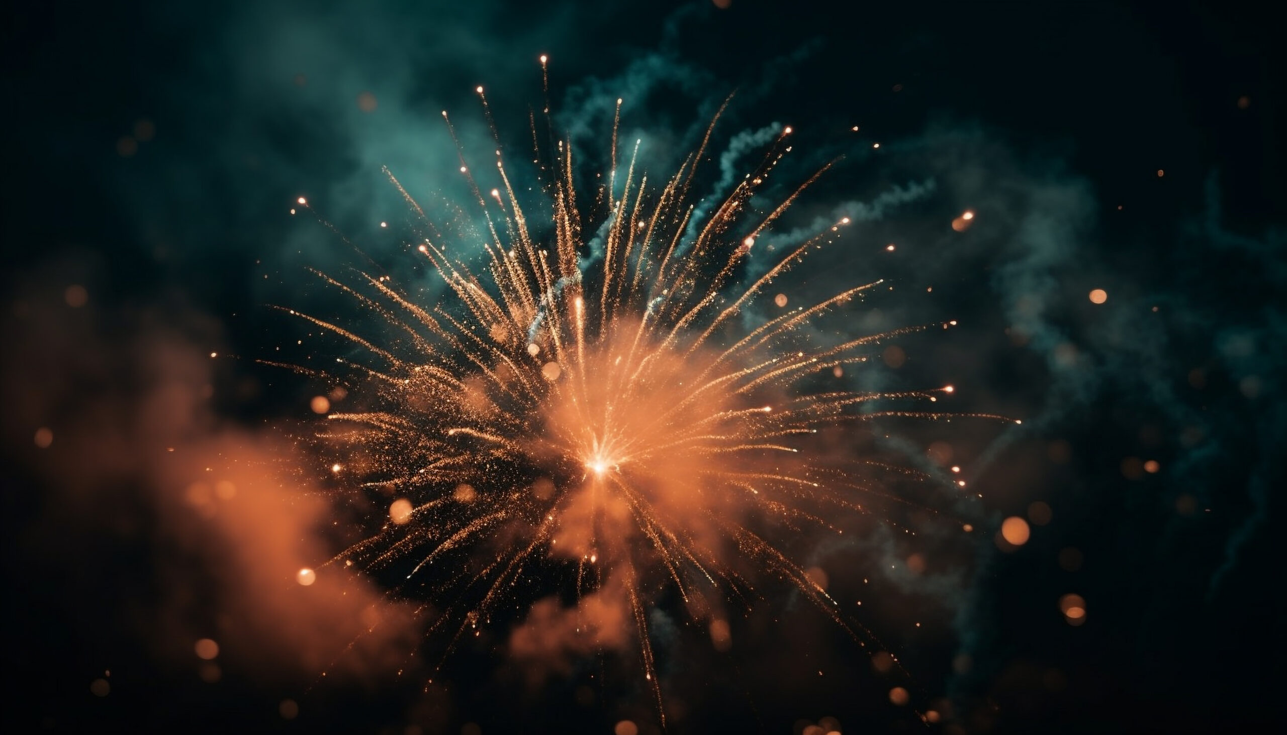 Glowing multi colored fireworks exploding in celebration generated by AI